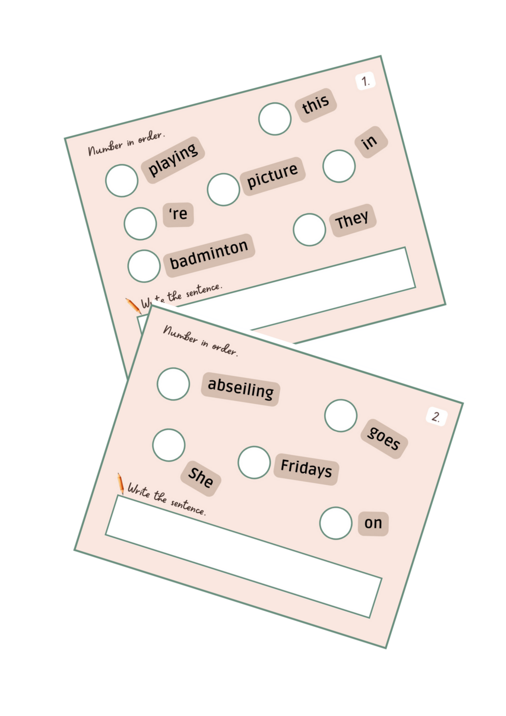 - FRASES DESORDENADAS. Presente Simple y Continuo: 14 tarjetas donde los estudiantes encontrarán frases desordenadas en presente simple y presente continuo relacionadas con el vocabulario de deporte. Deben numerar cada palabra en orden para formar frases correctas.