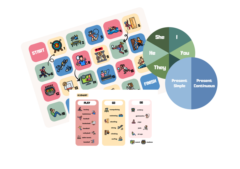 In this pack you will find 4 different games about present simple and present continuous tense related to sport vocabulary: