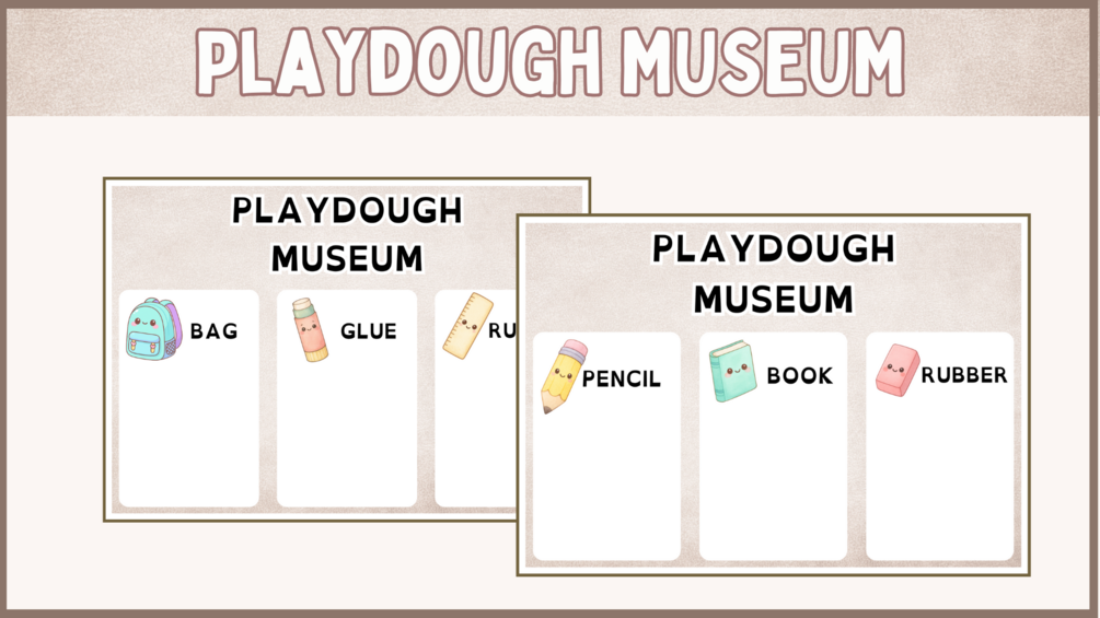- Playdough Museum: Model classroom objects with playdough and present them to peers.