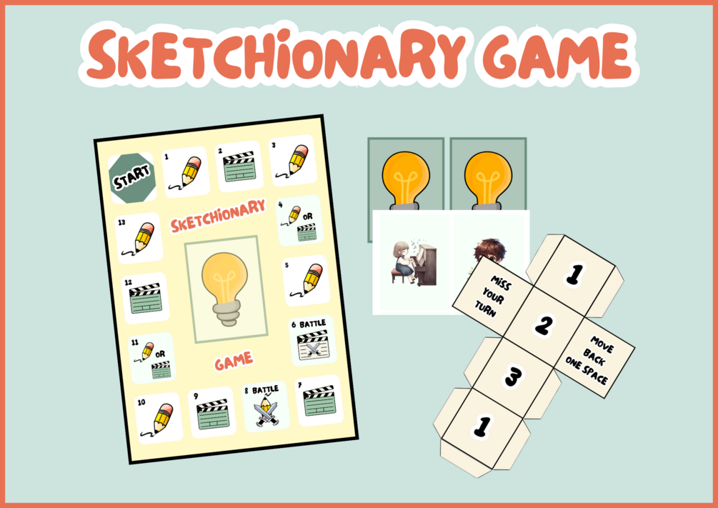 - Sketchionary Game: A fun and interactive game involving drawing and miming activities.