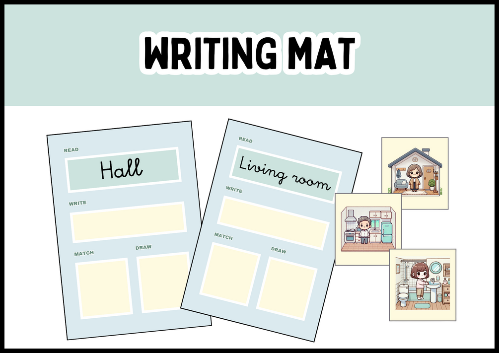 - Includes: 12 writing mats and 12 image cards.