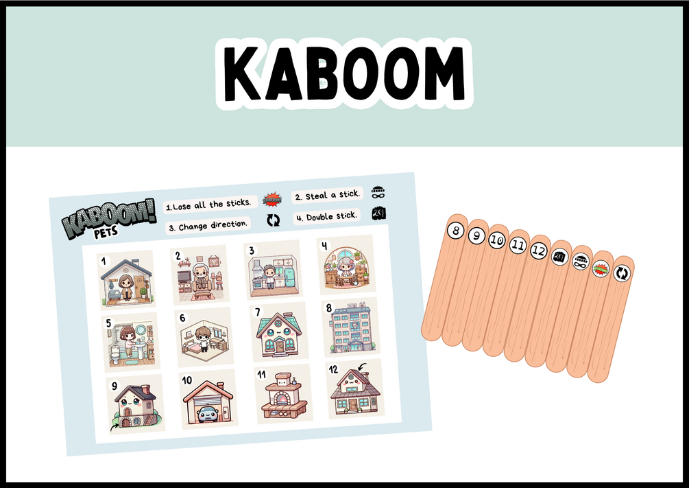 - Incluye: 1 tablero de juego con 12 casillas y palitos de helado (o palitos imprimibles).